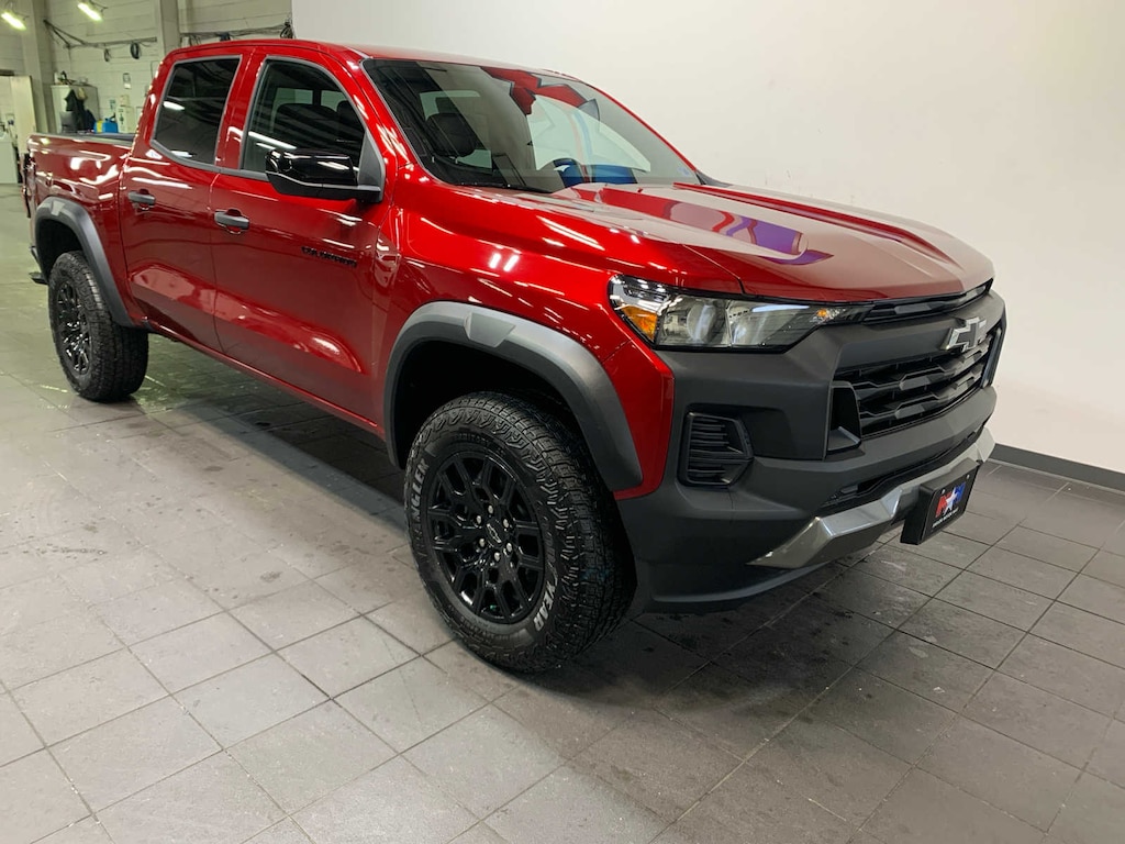 includes (A2X) 8-way power driver seat, (AL9) driver power lumbar, (BTV) Remote starter, (K7A) Wireless Charging, (KA1) heated front seats, (KI3) heated steering wheel, (N5G) 4-spoke wrapped steering wheel and (H2G) Evotex seats. (dealer-installed), includes Chevrolet logo, (dealer-installed), (310 hp [231 kW] @ 5600 rpm, 430 lb-ft of torque [583 Nm] @ 3000 rpm) (STD), (STD). Chevrolet 4WD Trail Boss with Radiant Red Tintcoat exterior and Jet Black interior features a 4 Cylinder Engine with 310 HP at 5600 RPM*.