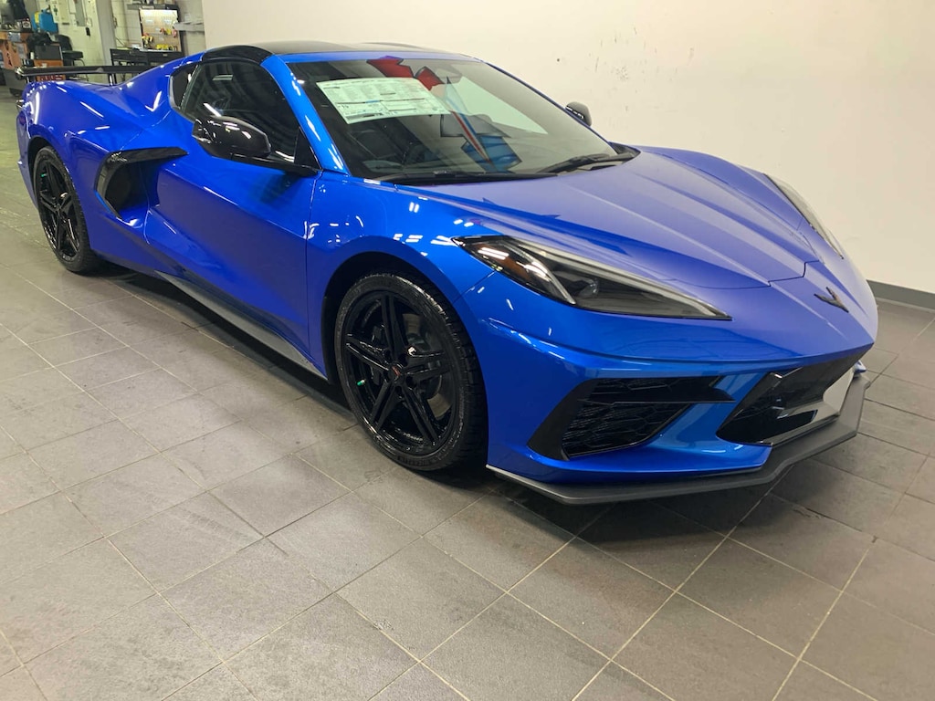 includes (J55) Z51 performance brakes, (FE3) Z51 performance suspension, (NPP) performance exhaust, (GM7) performance rear axle ratio, (G96) Electronic Limited Slip Differential (eLSD), (T0A) Z51 rear spoiler, front splitter, (QUD) 245/35ZR19 front and 305/30ZR20 rear, blackwall, high performance tires and (V08) heavy-duty cooling system, SEATS, GT2 BUCKET, ROOF PANEL, TRANSPARENT, REMOVABLE, WHEELS, 19" X 8.5" (48.3 CM X 21.6 CM) FRONT AND 20" X 11" (50.8 CM X 27.9 CM) REAR 5-SPLIT-SPOKE GLOSS BLACK FORGED ALUMINUM, Variable Valve Timing (VVT), Active Fuel Management (AFM) (490 hp [365.4 kW] @ 6450 rpm, 465 lb-ft of torque [627.8 N-m] @ 5150 rpm) (STD), (STD). Chevrolet 2LT with Riptide Blue Metallic exterior and Jet Black interior features a 8 Cylinder Engine with 490 HP at 6450 RPM*.